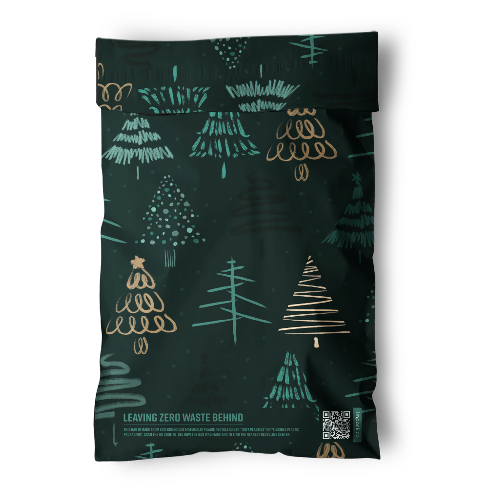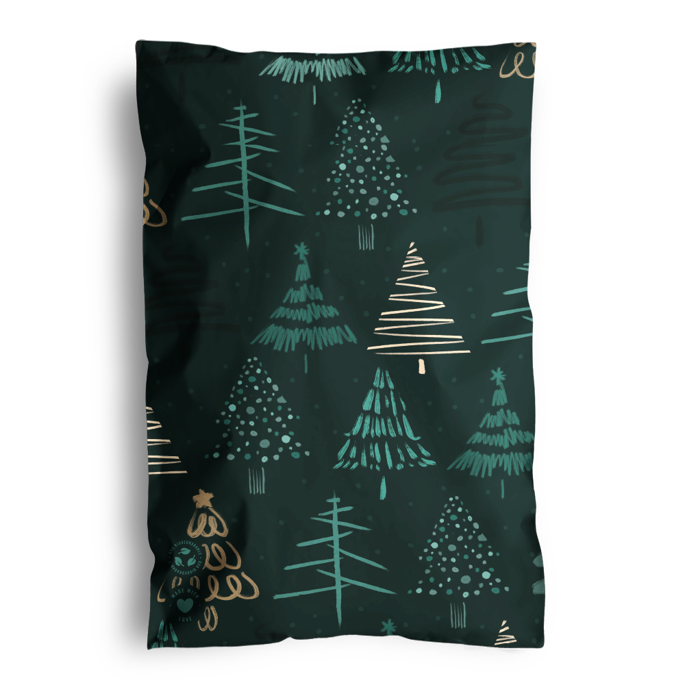 Celebrate the season sustainably with our Pine Forest print. Set against a deep forest green backdrop, whimsical hand-drawn Christmas trees in soft teal and golden hues bring a touch of festive charm. This cozy yet elegant design captures the magic of the holidays while staying true to your eco-friendly values.