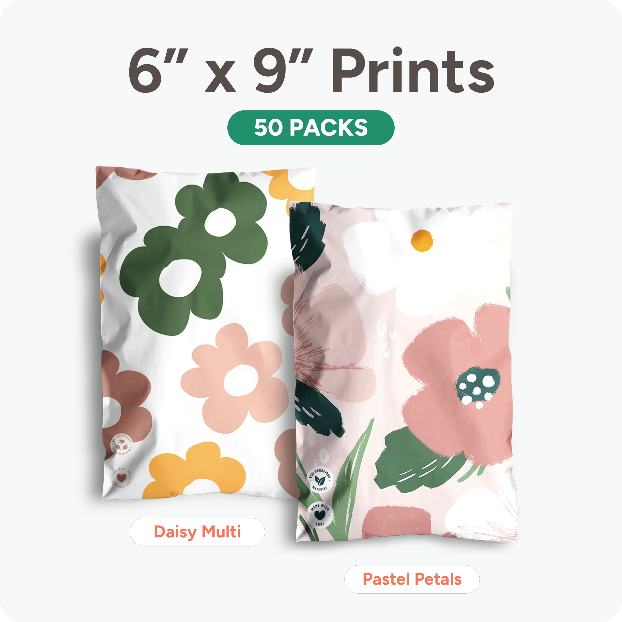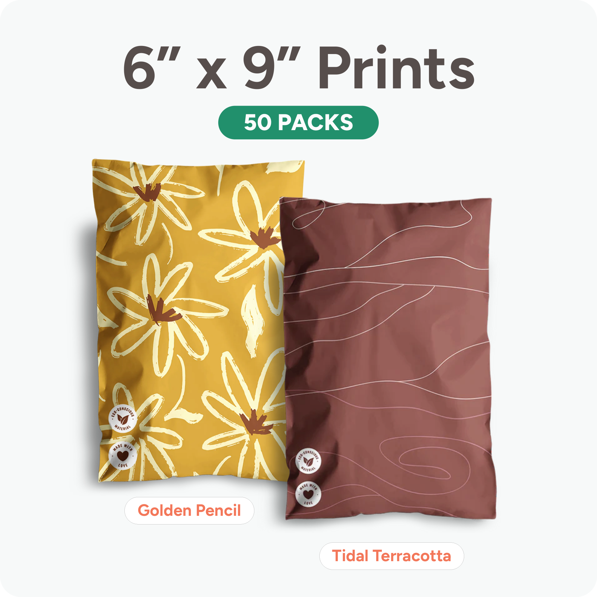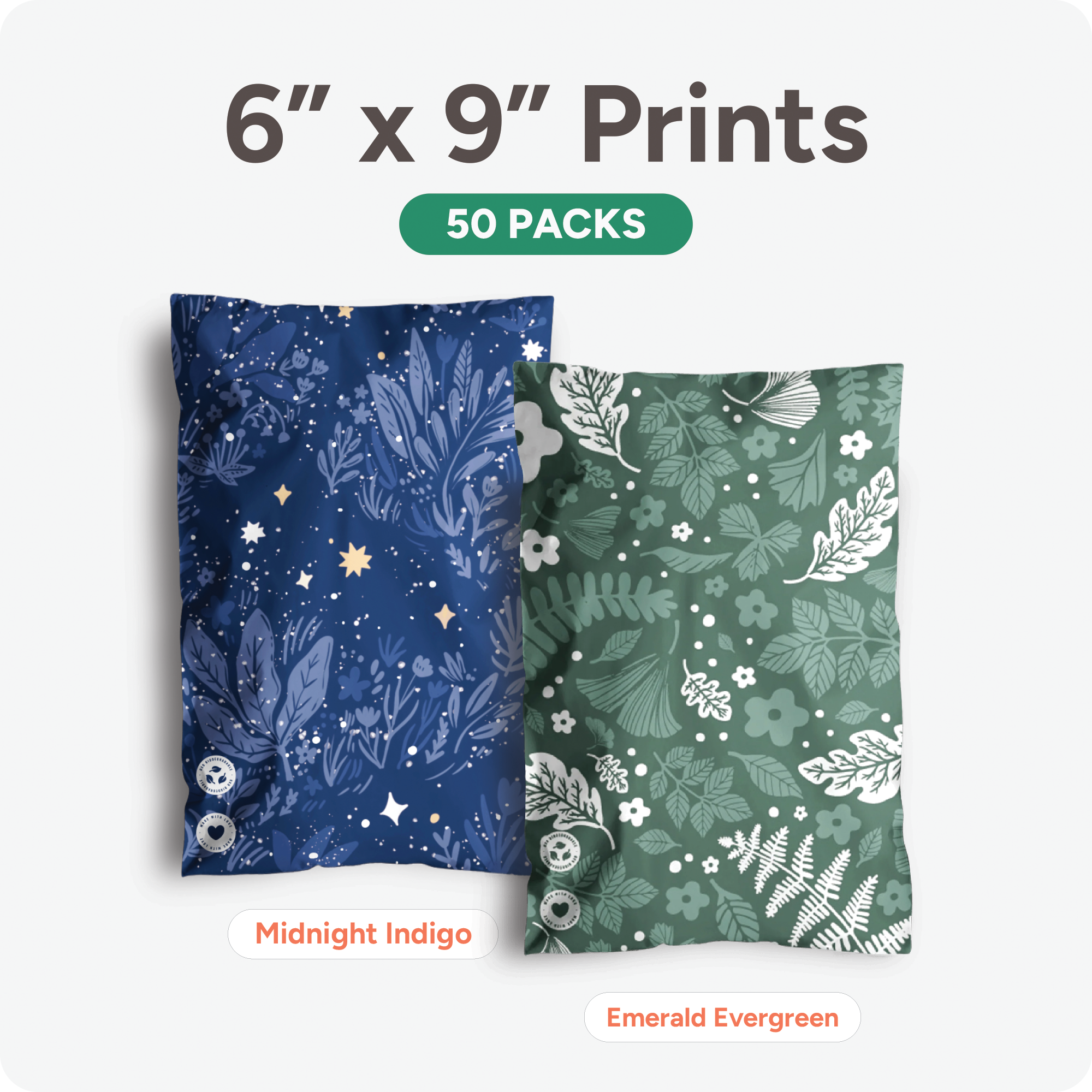 Each bundle includes two 25-pack sets of our 6" x 9" biodegradable mailers in thoughtfully paired prints. Designed to add personality to your packaging while staying eco-conscious.